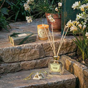 信頼と思いやりという花言葉を運ぶフリージアは、南半球原産の希少な植物としてルネサンス期のメディチ家が開発したフィレンツェの冬期温室の中で栽培されていました。 数世紀にわたる植物学の精緻さが息づくフリージア。ルネサンスの伝統と現代の感性が融合して生まれる、パウダリーかつ輝かしい香りをお楽しみください。