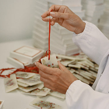 蝋と植物素材で繊細に作られたワックスタブレットは、フィレンツェのオフィチーナ・プロフーモ・ファルマチェウティカ・ディ・サンタ・マリア・ノヴェッラで、一つひとつ丁寧に手作りされています。それぞれのタブレットは、手作業で蝋を流し込み、植物素材を配置し、仕上げられます。この工程は、フィレンツェならではの職人技と香りの芸術に基づく、時間と手間をかけた丁寧な作業です。香りがゆっくりと広がると、この作品は小さな美の表現となり、日常に静かで上質なひとときをもたらします。