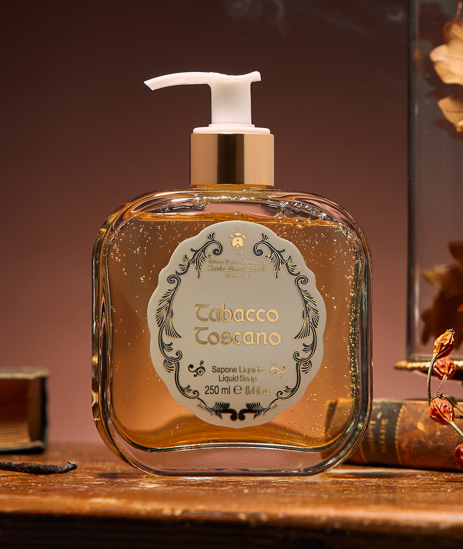 ハンドソープ トバッコ トスカーは、ベルベットのように魅力的な世界への扉を開きます。 植物由来の界面活性剤と天然サポニンが、レザー、アンバー、ウッドの香りと調和し、心地よいひとときを演出します。