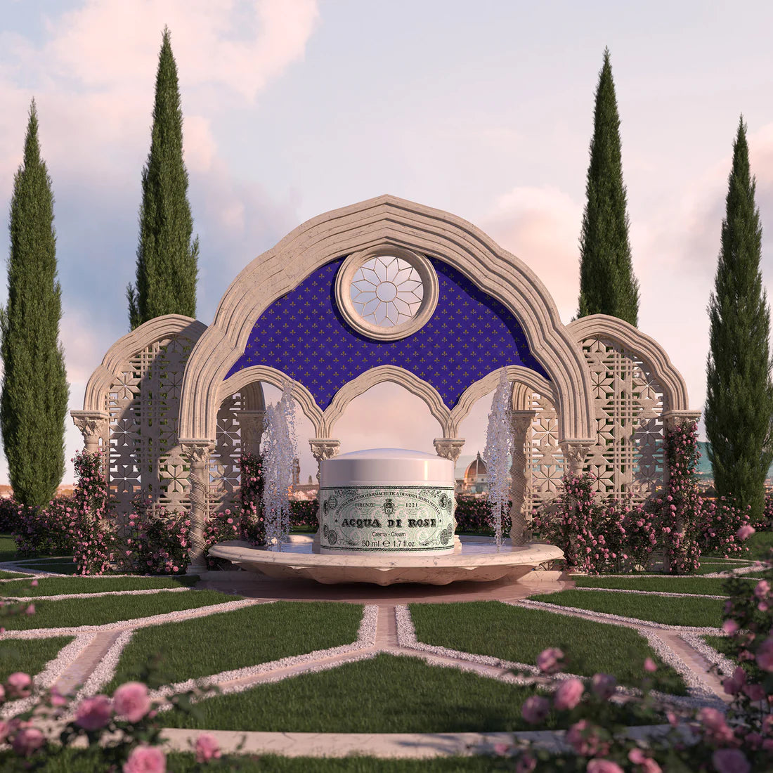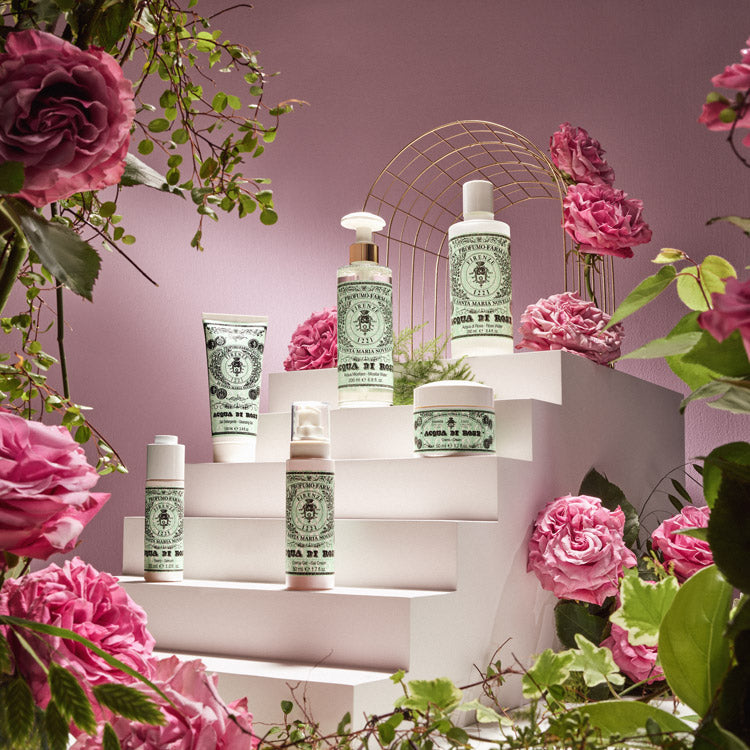 Acqua di Rose’s legend is rooted in the dawn of time. Prepared since 1381, its name means “water made with roses”. The delicate, yet refreshing and toning formula still enchants us today: crafted with distilled water of damascena rose, it is a revitalizing toner for any skin type, even the delicate ones.
