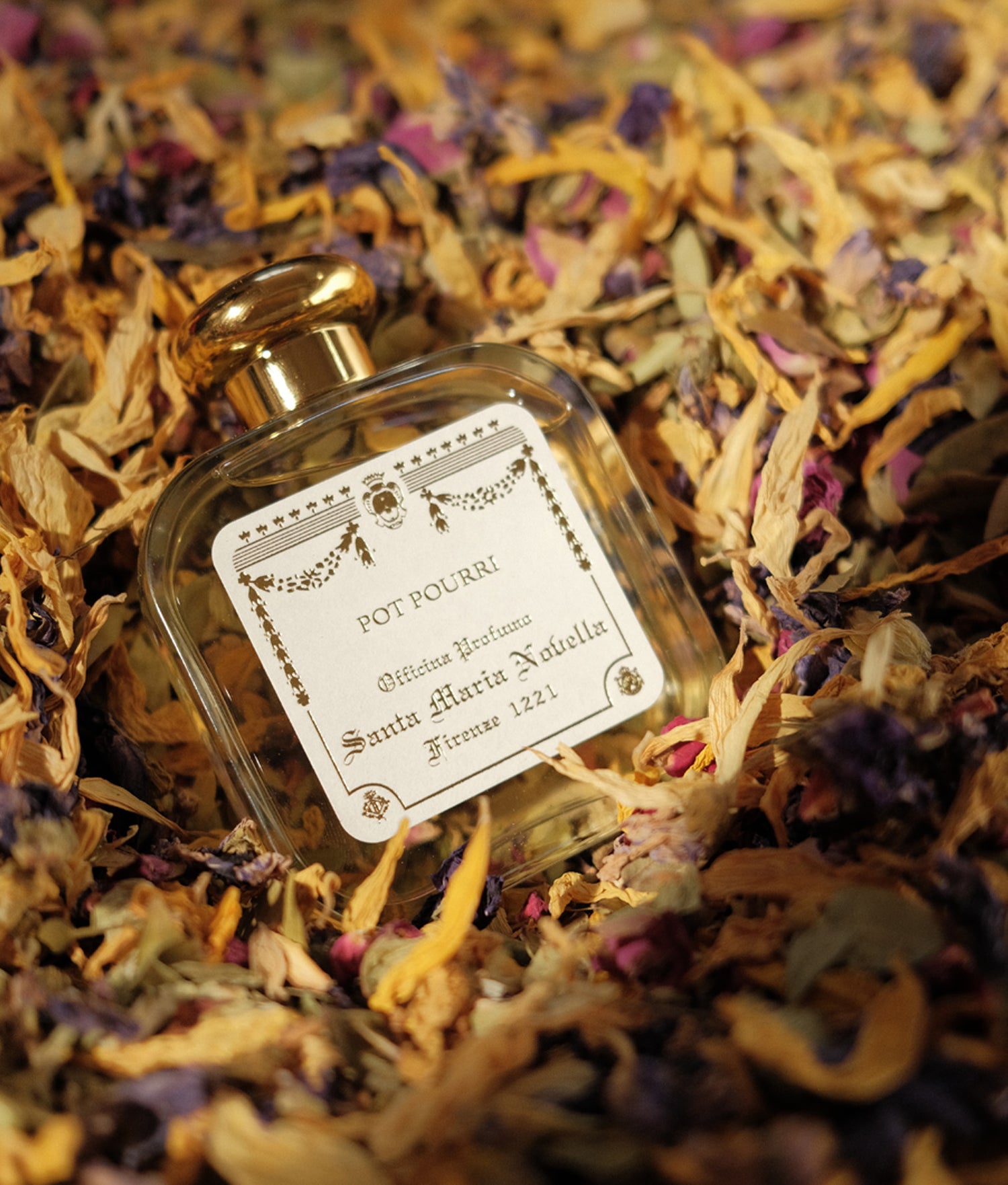 トスカーナの甘美な丘陵に息づく厳選された花々、葉、ハーブを乾燥させ、オフィチーナ・プロフーモ・ファルマチェウティカ・ディ・サンタ・マリア・ノヴェッラの魅惑的なオイルと香りと見事に融合させました。トスカーナのエッセンスを象徴する調合で、その美しさを守りながら、その香りを世界中へと広げます。