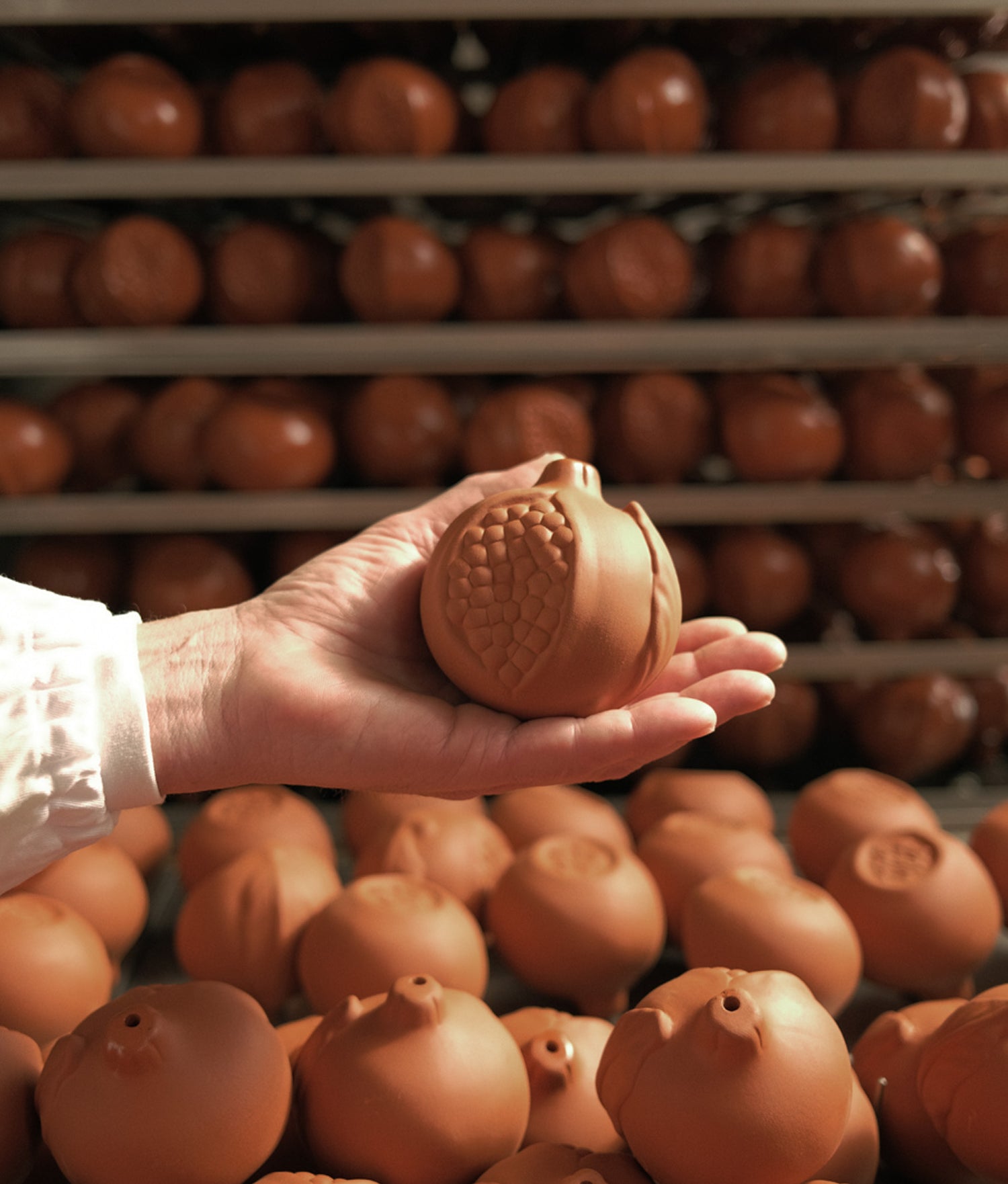 テラコッタ ザクロは、私たちのクラフトマンシップの象徴です。自然の美しさからインスパイアされた独創的な香りと形が豊かさと再生を表し、時間と知識の価値を思い出させてくれます。