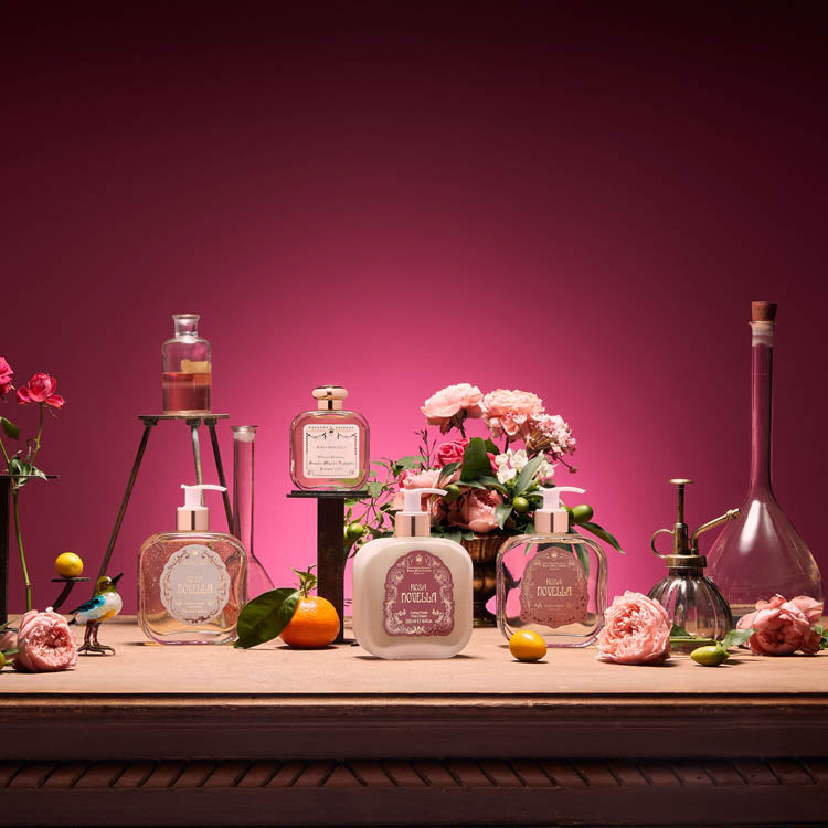 5月のサンタ・マリア・ノヴェッラ庭園で私たちを迎えてくれる香りと同じように、柑橘系のトップノートに、ローズとホワイトフラワーの官能的な香りが加わります。