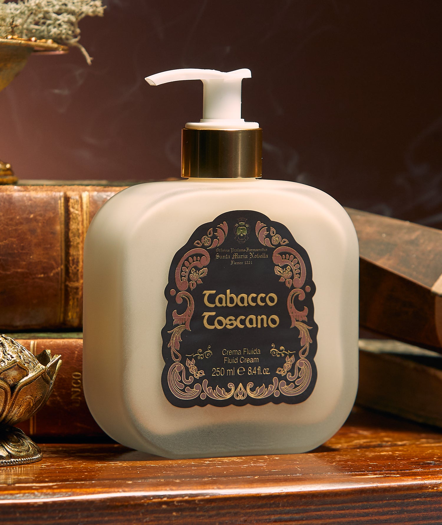 ボディミルク トバッコ トスカーノのウッディでレザーの香りとともに、肌にやわらかな潤いを与えます。 その名を冠したアイコニックなオーデコロンから受け継がれた香調が、より魅惑的なスキンケア体験へと導きます。