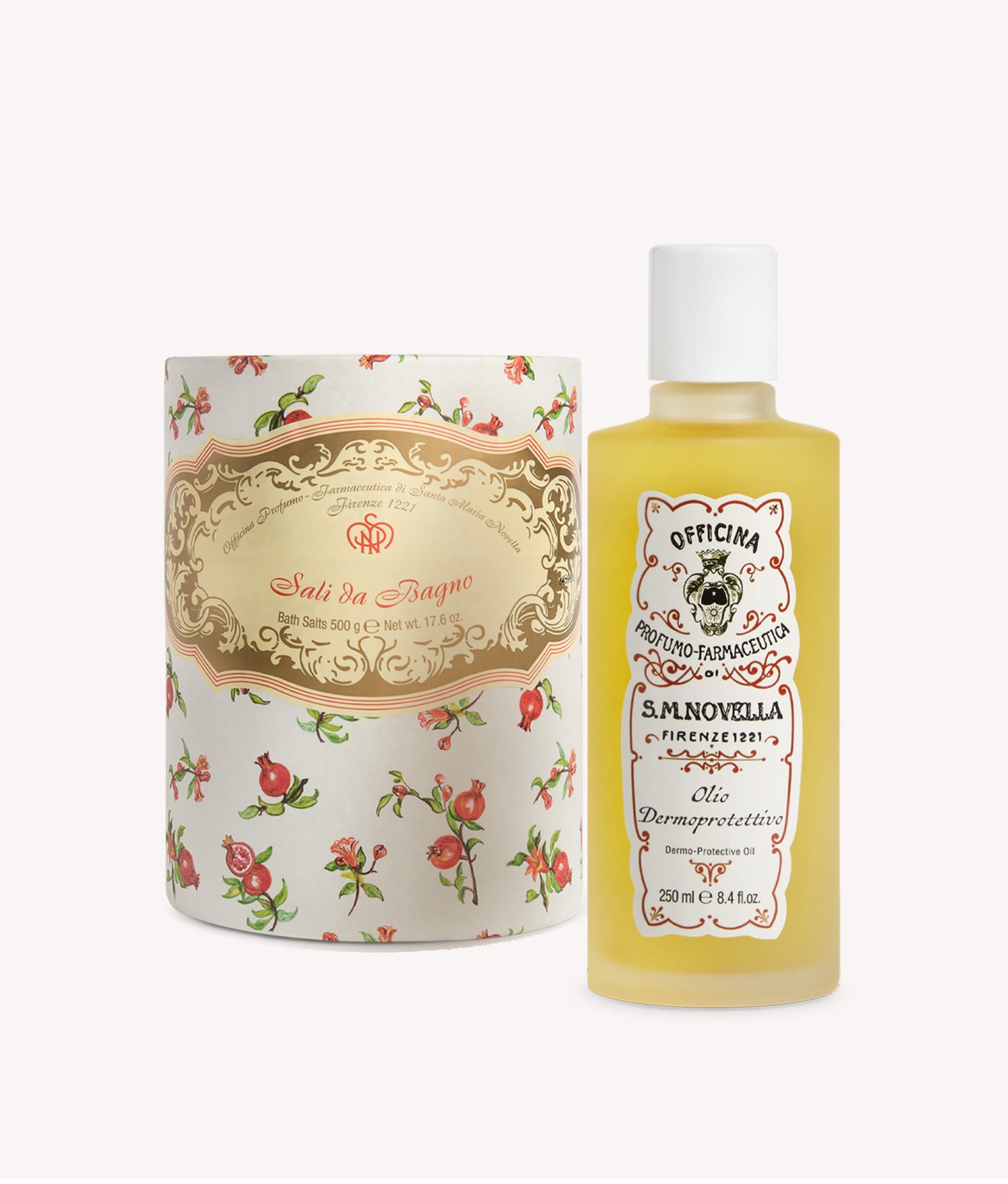 バスソルト ザクロがバスルームを贅沢な癒しの空間に変えます。オーデコロン ザクロの魅惑的な香りに包まれ、香り豊かなリラクゼーションのオアシスへと誘います。肌を柔らかく滑らかに整え、他にはない特別なバスタイムをお楽しみいただけます。