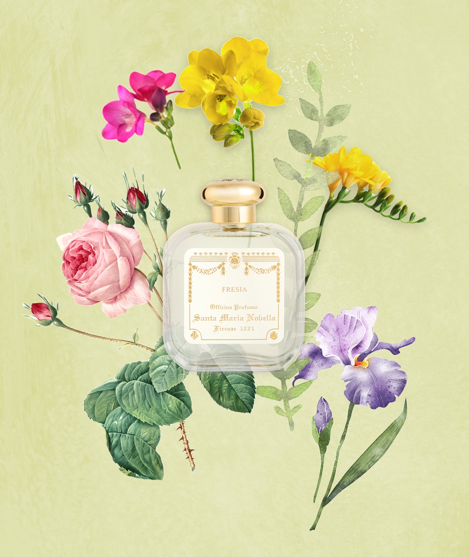 フリージアは、フレッシュでクリーンな香りのフレグランスです。そのブーケを特徴づける、フリージアの華やかな香りから始まります。ミドルノートでは、スミレとセンティフォリアローズアブソリュートが無垢で繊細なニュアンスを加えます。そしてベースノートでは、アイリスのパウダリーな香りが柔らかなムスクの香りと調和します。